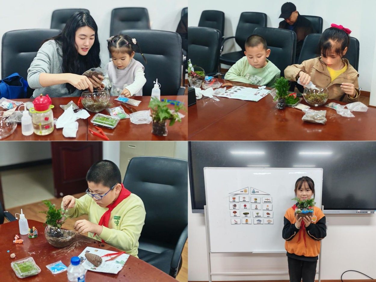 最激動人心的環(huán)節(jié)是生態(tài)瓶制作。每個家庭都化身創(chuàng)造者,專注地鋪石、培土、種植苔蘚,共同構(gòu)建起一個個美麗的“瓶中森林”。孩子們手捧自己打造的微縮世界,成就感和喜悅之情溢于言表。